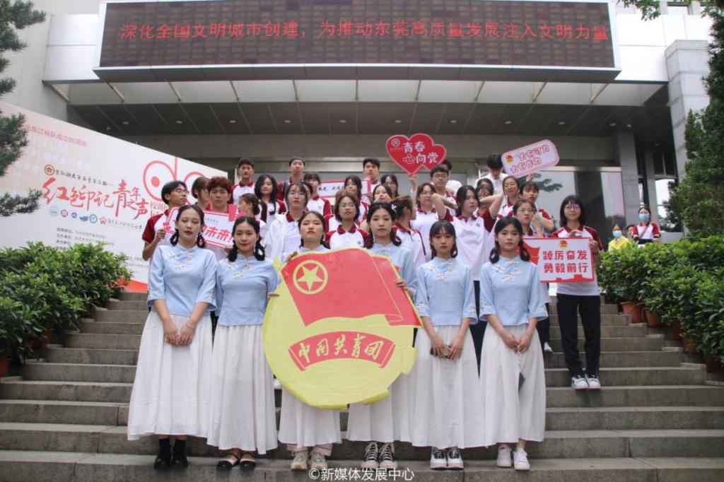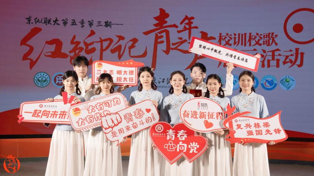 雅言传承精神,经典浸润思想。我校华商之声广播电视台学生代表参加“东纵联大”第五季第三期“红色印记 青年之声”校训校歌展示活动。同学们声情并茂,慷慨激昂,带来朗诵节目《星火青年》。“厚德、励志、博学、创新!奔涌吧,华商青年们。让青春在为人民,为民族,为祖国,为人类的不懈奋斗中绚丽绽放。”他们以朗诵传递华商校训,借表演诠释时代精神,展现华商青年向上精神风貌,张扬青春风采,表达传承革命薪火、把青春播撒在实现民族复兴的中国梦征程上的决心和行动。