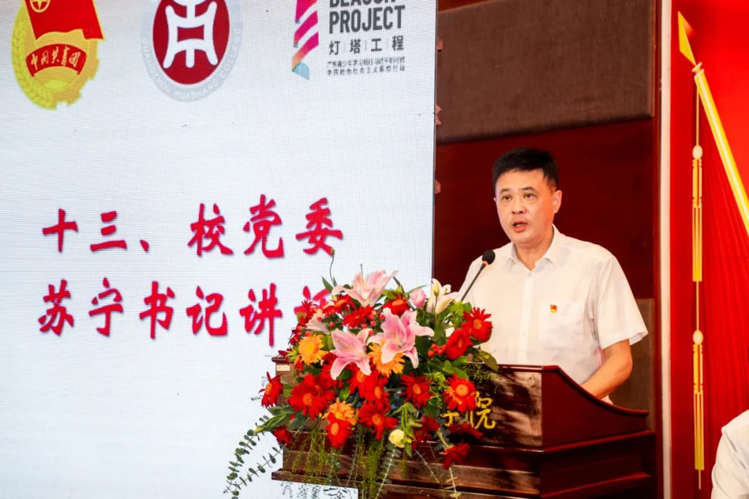 党委苏宁书记进行总结讲话。苏宁书记代表学校党委向受到表彰的先进集体和个人表示热烈祝贺。他指出,2023年是贯彻党的二十大精神的开局之年,作为党的助手和后备军,华商青年肩负重任,发挥先锋模范作用。他勉励大家:第一,坚定理想信念,做先进思想的信仰者;第二,传承实干精神,做本领过硬的奋斗者;第三,勇担时代重任,做强国征程的践行者。希望广大华商青年勇于实践、敢于担当,做到敢想敢为又善作善为,在实践中建功立业,为全面建设社会主义现代化国家贡献青春力量!