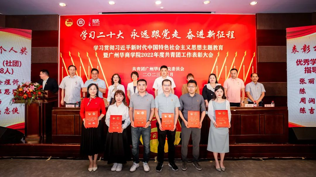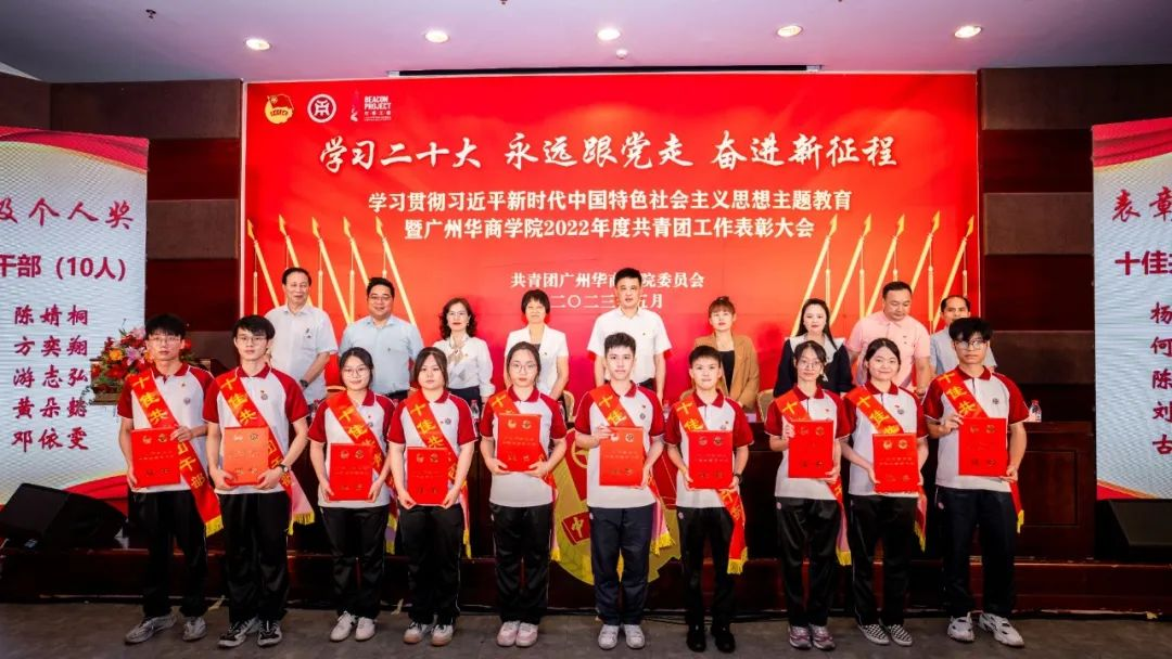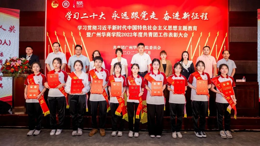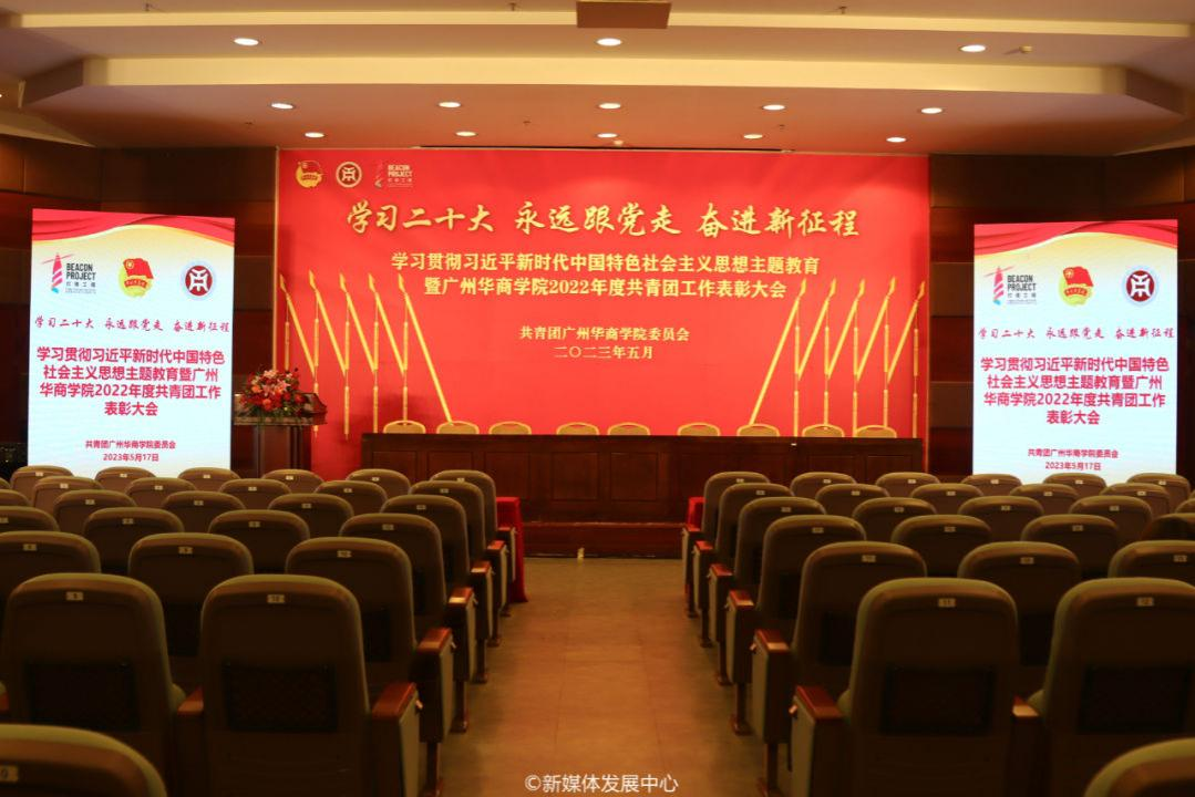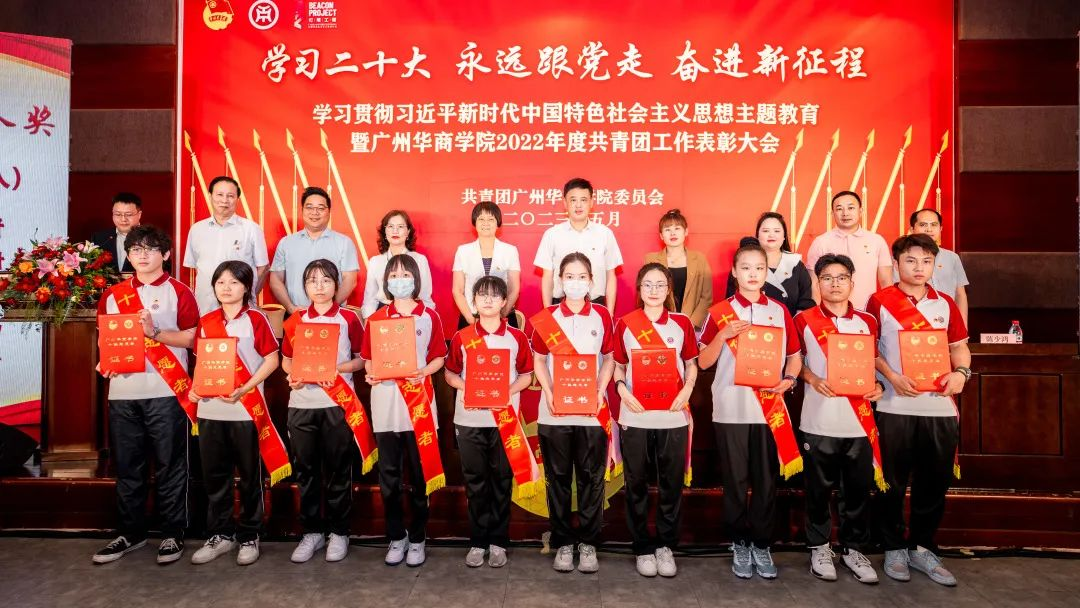 为深入学习贯彻党的二十大精神,全面领会习近平总书记关于青年工作的重要思想,引导广大华商青年厚植家国情怀、涵养进取品格,以习近平新时代中国特色社会主义思想凝心铸魂,用奋斗姿态激扬青春,不负时代、不负韶华,努力成长为有理想、敢担当、能吃苦、肯奋斗的新时代好青年。在学校党委领导下,校团委在国际会议中心4楼报告厅举行“学习二十大,永远跟党走,奋进新征程”学习贯彻习近平新时代中国特色社会主义思想主题教育暨广州华商学院2022年度共青团工作表彰大会。本次表彰大会采取线上和线下相结合的方式,增城校区设主会场,四会校区设立分会场。大会由校团委陈刚书记主持。