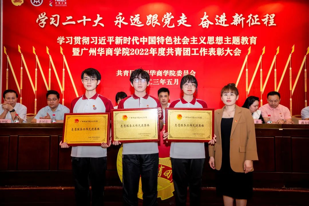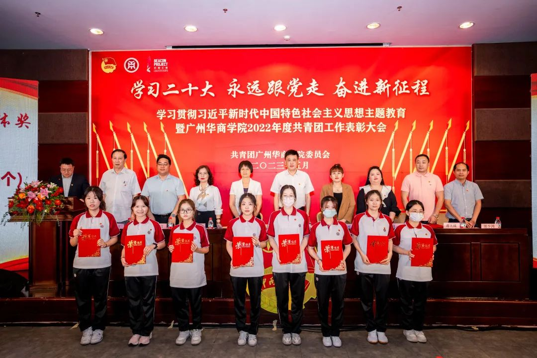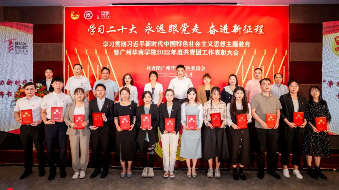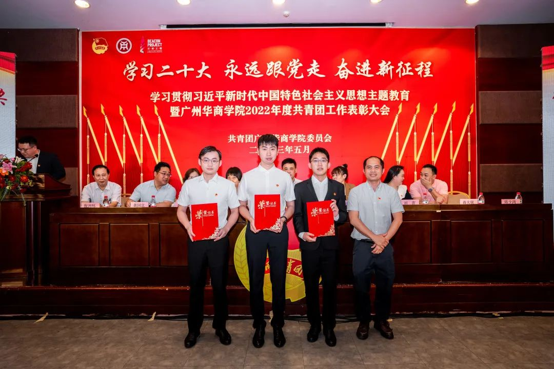为深入学习贯彻党的二十大精神,全面领会习近平总书记关于青年工作的重要思想,引导广大华商青年厚植家国情怀、涵养进取品格,以习近平新时代中国特色社会主义思想凝心铸魂,用奋斗姿态激扬青春,不负时代、不负韶华,努力成长为有理想、敢担当、能吃苦、肯奋斗的新时代好青年。在学校党委领导下,校团委在国际会议中心4楼报告厅举行“学习二十大,永远跟党走,奋进新征程”学习贯彻习近平新时代中国特色社会主义思想主题教育暨广州华商学院2022年度共青团工作表彰大会。本次表彰大会采取线上和线下相结合的方式,增城校区设主会场,四会校区设立分会场。大会由校团委陈刚书记主持。