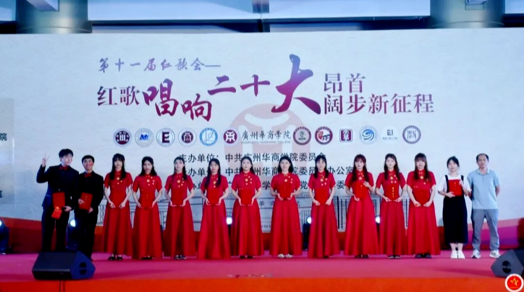 为深入学习宣传贯彻党的二十大精神,积极推进学习贯彻习近平新时代中国特色社会主义思想主题教育在校园内走深走实,热情讴歌党的丰功伟绩,抒发师生的爱党爱国情怀,2023年5月26日晚上19:00,我校于启智楼一楼举办广州华商学院“红歌唱响二十大,昂首阔步新征程”第十一届校园红歌会。