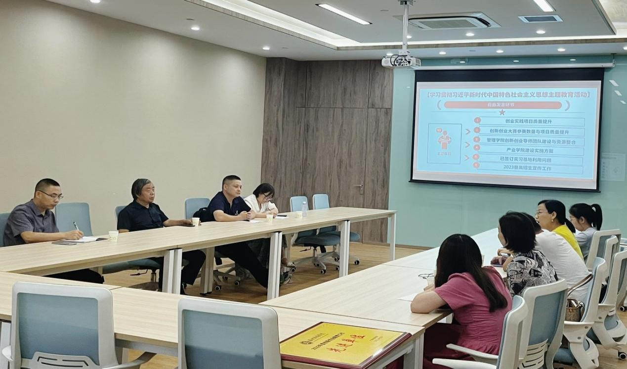 为扎实推进学习贯彻习近平新时代中国特色社会主义思想主题教育走深走实,推动学院创新创业教育、产教融合与招生工作高质量发展,广州华商学院管理学院于2023年6月1日下午16:00在教师发展中心互动室5召开创新创业教育、产教融合与招生工作专题调研座谈会。管理学院院长李招忠教授、院长助理袁仕海博士、各系领导、产教融合专员、创新创业秘书及教师代表参加了本次座谈会。会议由院长助理袁仕海博士主持。
