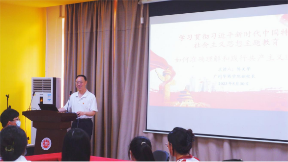 根据学校党委主题教育工作部署安排,结合会计学院工作实际,5月30日下午,广州华商学院副校长兼会计学院院长陈美华教授在会计学院报告厅为学生党员讲授学习贯彻习近平新时代中国特色社会主义思想主题教育专题党课。会议由学院党委副书记兼副院长陈洋广主持。