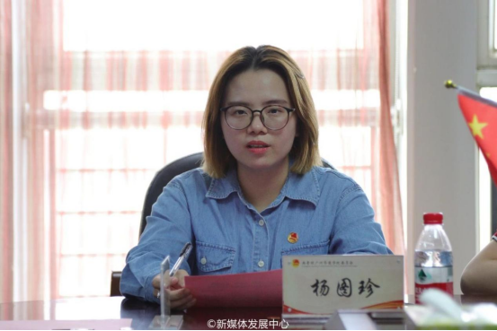 广东青年大学生“百千万工程”突击队“结对成功墙”上墙项目“于江慕茗”实践团队指导老师杨图珍老师发言。她指出暑期“三下乡”社会实践活动是当代青年大学生运用知识,施展才华,磨练意志,实践成才的大课堂。她代表社会实践的指导老师承诺,将秉持奉献意识,加强对学生专业指导,保障学生安全,引导华商学子在广泛深入的社会实践中厚植爱农情怀,练就兴农本领,在乡村振兴的大舞台上建功立业。