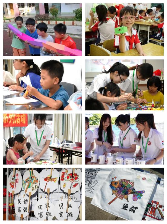 (图为广州华商学院暑期社会实践队队员学子在中小学群体中宣传优秀广府非遗文化,带领小朋友们感受非遗文化对心灵深处的滋养)