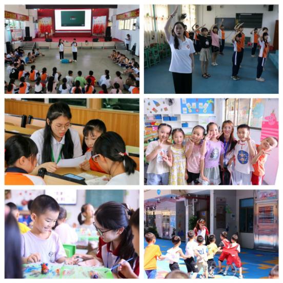 (图为广州华商学院暑期社会实践队队员在乡村、中小学开展红色精神宣讲,用党的先进理论培根铸魂)