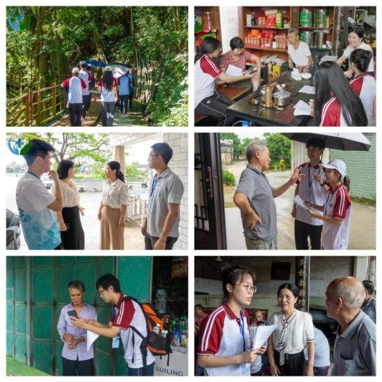(图为广州华商学院暑期社会实践队队员在实践地深入田野,走访调研,了解村情社情,感悟乡村振兴成果)